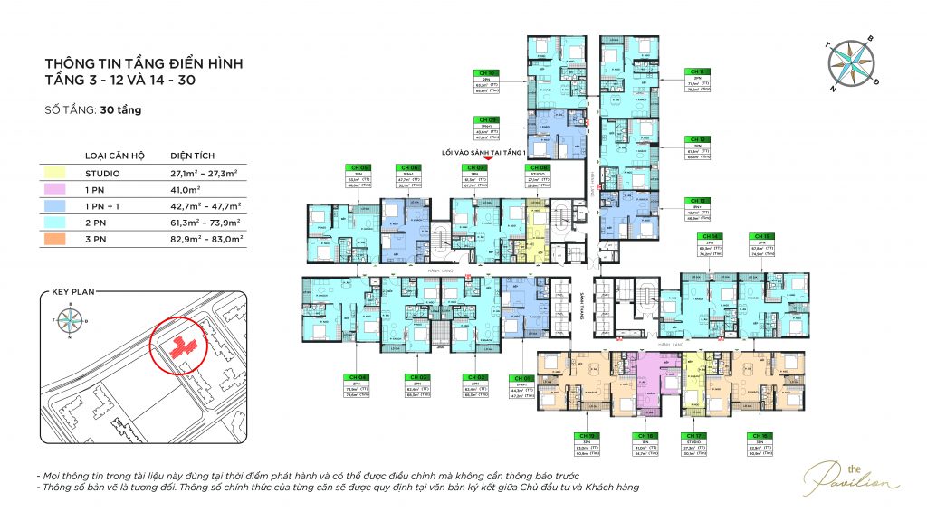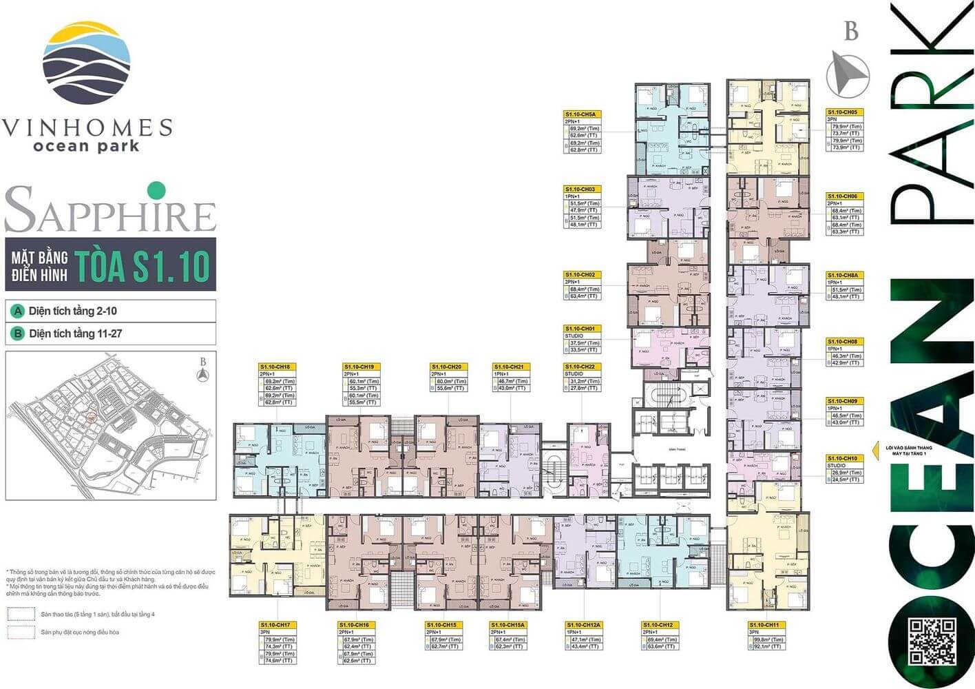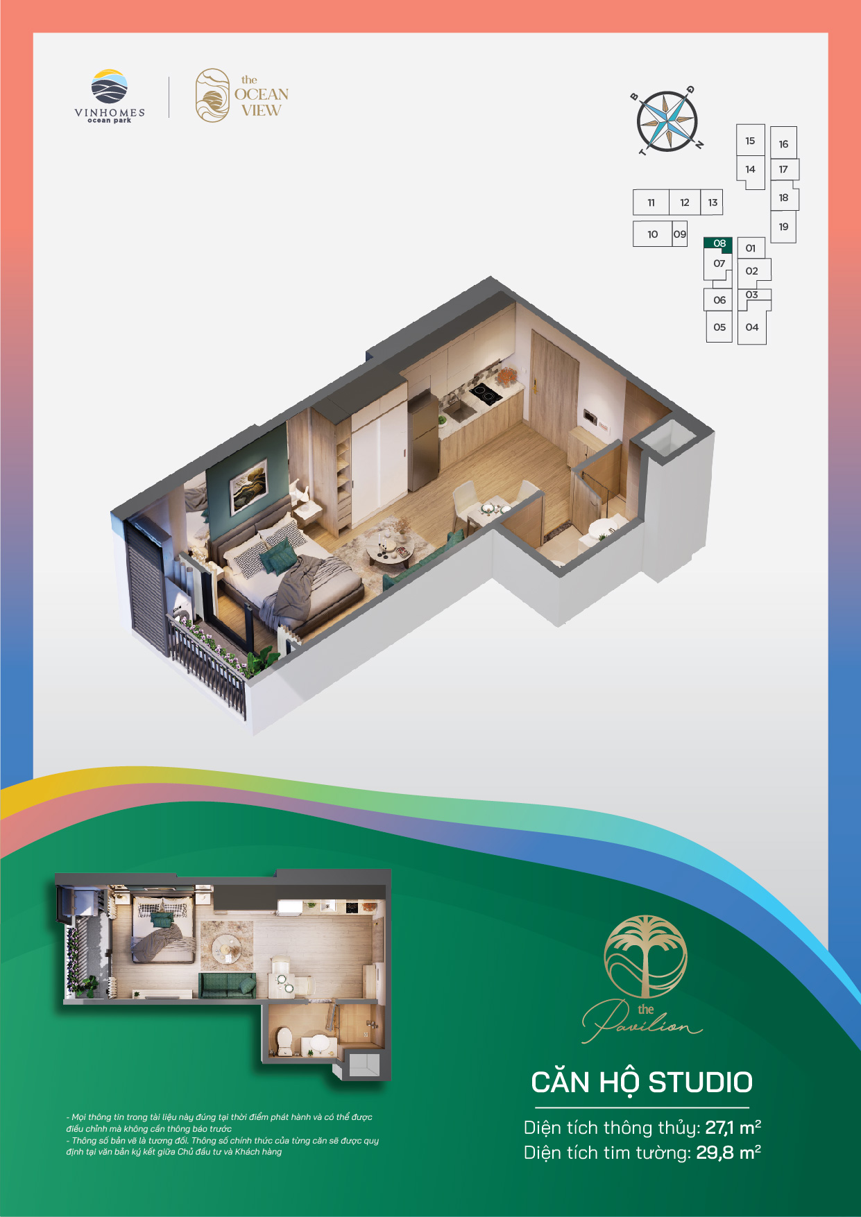 - Căn Studio: 27.1 – 30m2, giá bán 1.1 – 1.4 tỷ.