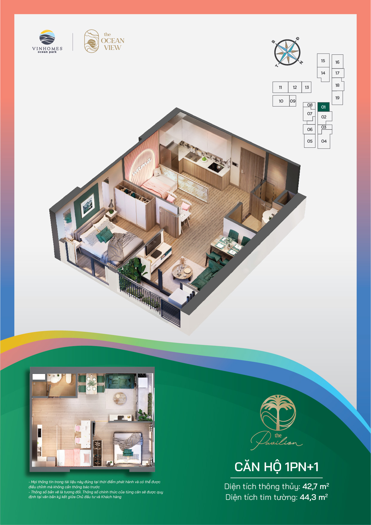 - Căn 1 ngủ: 41 – 46m2, giá bán 1.7 – 2.3 tỷ.