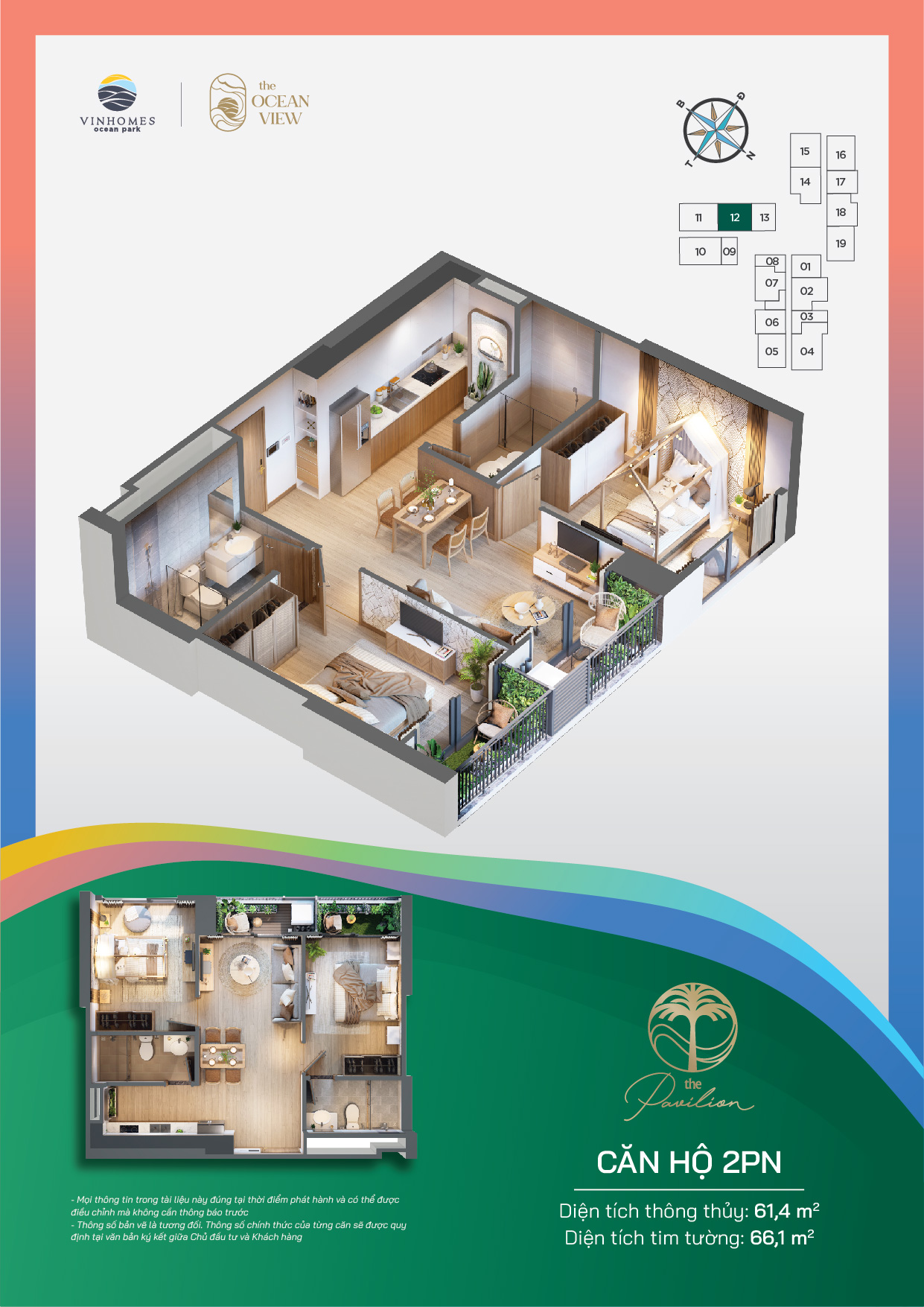 - Căn 2 ngủ: 64 – 68m2, giá bán 2.8 – 3.2 tỷ.