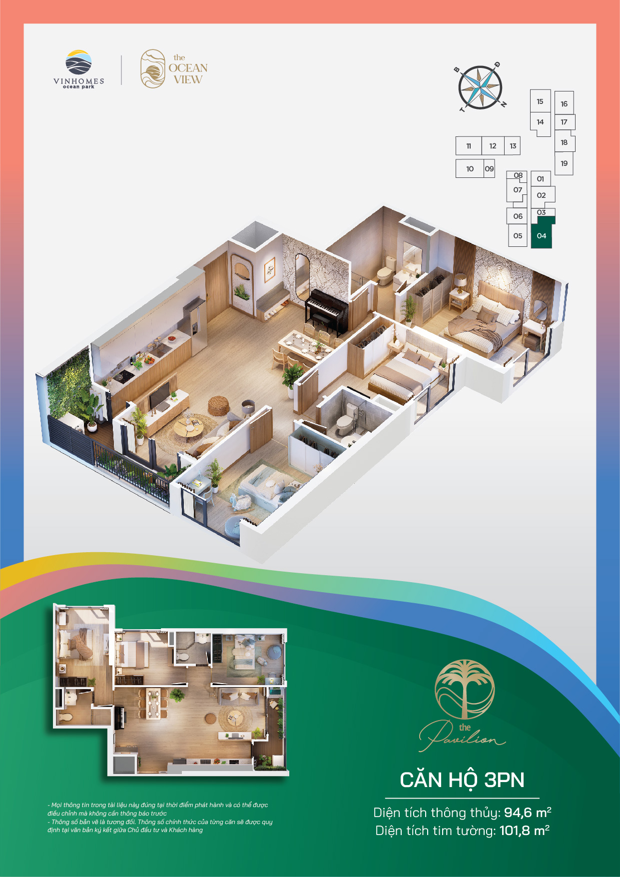 - Căn 3 ngủ: 76 – 106m2, giá bán 3.7 – 4.3 tỷ.